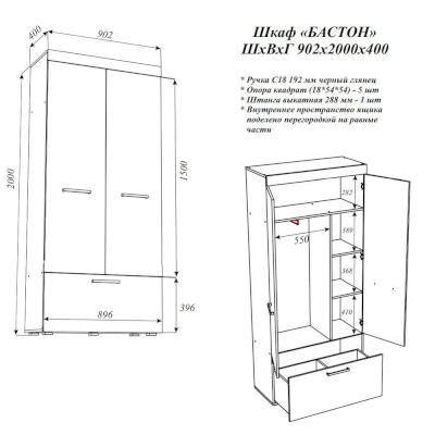 Шкаф Бастон (Эра) продается в интернет-магазине v-penze-mebel.ru по цене 12 434 руб. Есть доставка по Пензе и Пензенской области. Возможность подъема на этаж и сборки уточняйте у менеджера по телефону 8(800)505-27-11.