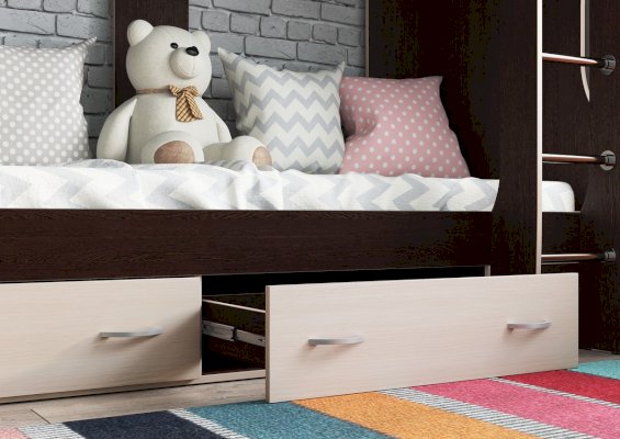 - Нижнее спальное место дополнено двумя выдвижными ящиками на роликовых направляющих